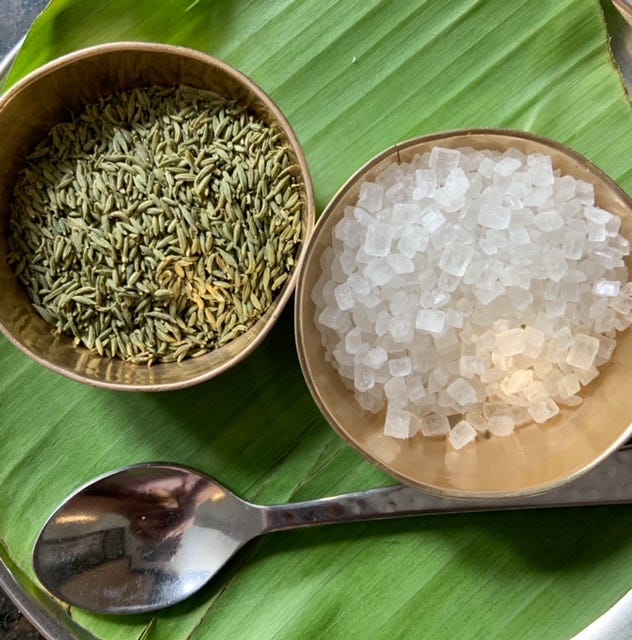 Saunf and mishri are as important at desi restaurants as finger bowls. I haven’t eaten at a typical North Indian restaurant in Delhi in the last five or so years, or travelled through the South of India long or recently enough to identify whether they’ve been a fixture there too, but most North Indian restaurants worth their salt always brought out finger bowls after meals when I was younger. After meals, servers usually placed a small bowl of warm water with a slice of lemon swimming in it at your table, meaning for it to be the epitome of hospitality. Although nawab-esque, it was something I looked forward to. Dipping my fingers in lemon-infused warm water was comforting and felt like the hygienic thing to do before wipes and hand sanitisers became the norm.